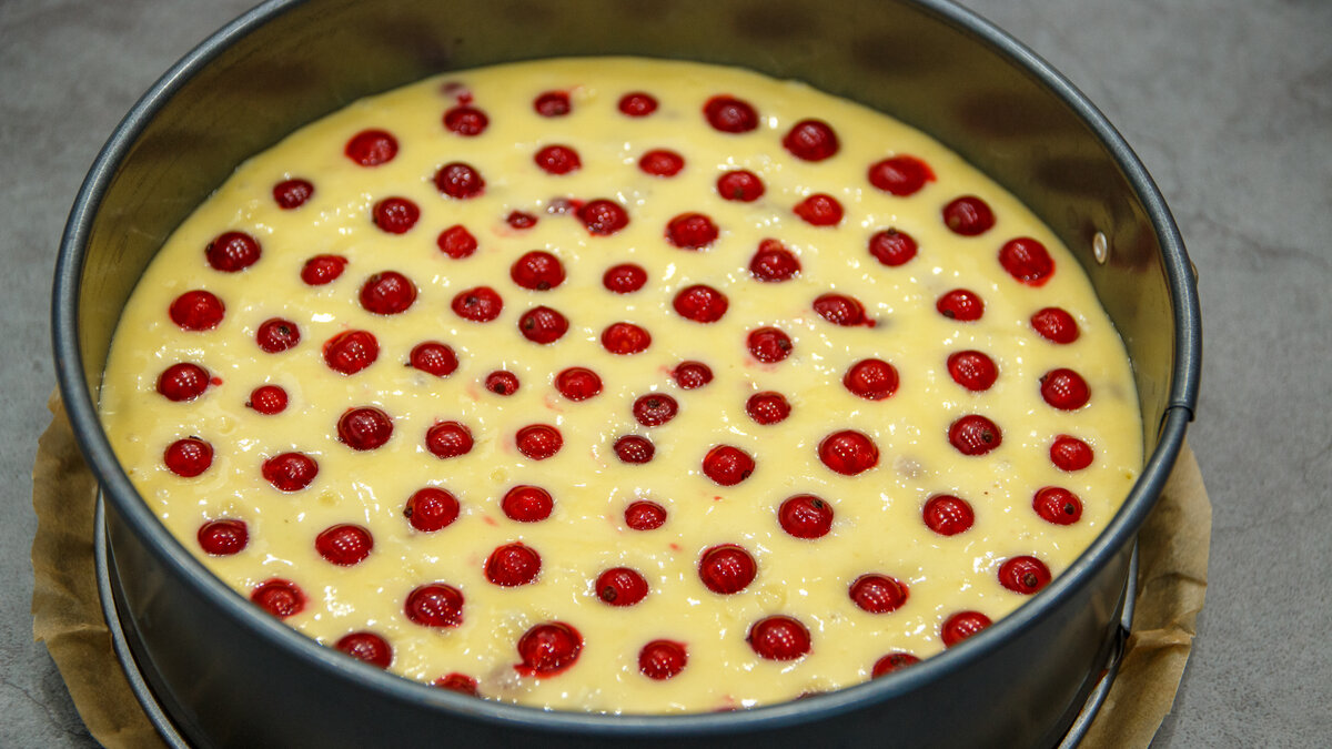 Сейчас на дворе июль, а значит пора есть малину, клубнику, вишню, шелковицу, красную и чёрную смородину. Я предлагаю сегодня испечь пирог с красной смородиной, но его можно готовить с разными ягодами и фруктами и каждый день наслаждаться новым вкусом. СПОСОБ ПРИГОТОВЛЕНИЯ: В миску вбиваем 2 яйца, добавляем щепотку соли и взбиваем около минуты. В слегка взбитые яйца добавляем 1 ч.л. ванильного сахара и 180 г обычного сахара и продолжаем взбивать ещё в течение 2-3 минут. Теперь во взбитые яйца выливаем 250 мл кефира (у меня жирностью 2,5%) и миксером соединяем его с яичной массой. В другой миске соединяем 260 г просеянной муки и 10 г разрыхлителя. Пересыпаем мучную смесь в жидкие ингредиенты и на самой слабой мощности всё хорошо перемешиваем. Теперь на данном этапе в тесто добавляем любые свежие или замороженные ягоды, сегодня пирог я делаю с красной смородиной. Сочетание сладкого бисквита и лёгкой кислинки идеально для летнего времени. Аккуратно вмешиваем ягоды в тесто. Выпекать пирог м