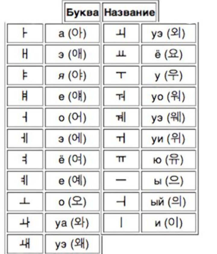 ⁸Урок 1 Гласные буквы: ㅏ-а ㅓ-оэ ㅣ-и ㅗ-о ㅡ- ы ㅐ-е ㅔ-э ㅜ-у ㅛ-ё ㅠ-ю ㅕ-йоэ ㅑ- йа