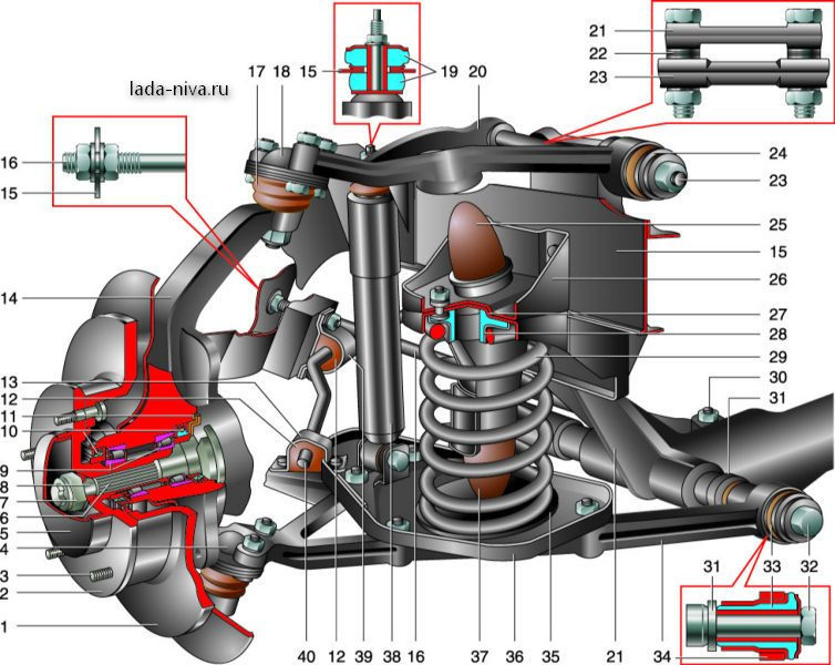 24 – резинометаллический шарнир (сайлент-блок) верхнего рычага;