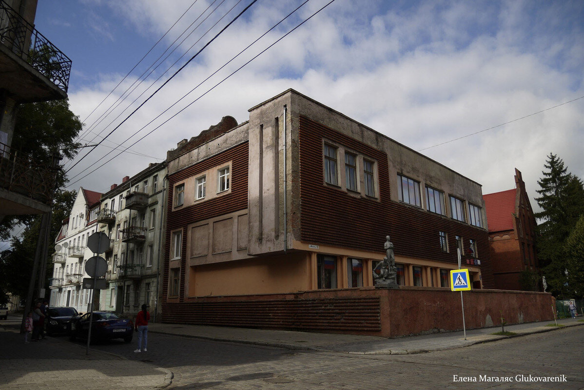 В Тильзите Советске на улице Фабрик Искры стоит одно из самых интересных немецких зданий города Здание впрочем не совсем ээээ «немецкое», т.к. было построено знаменитым архитектором Эрихом Мендельсоном... для иудейской общины Тильзита. До войны Тильзит был вторым по значимости городом Восточной Пруссии. Отсюда и прекрасные образцы немецкого функционализма. Эрих Мендельсон — всемирно известный архитектор-экспрессионист. Сохранились башня Эйнштейна в Потсдаме (1921) шляпная фабрика в Люккенвальде (1921-1923) кинотеатр «Универзум» («Шаубюне») в Берлине (1926-1929) Кстати, Мендельсон работал и для Советской России. В 1926 г. в Ленинграде по его проекту начали строить фабрику «Красное знамя». Проект не был завершен, построено только здание силовой станции. И он даже участвовал и в конкурсе на проектирование Дворца Советов, который собирались возвести на месте взорванного храма Христа Спасителя в Москве! 0_0 Мендельсон успел бежать от нацистов, из германии он уехал в 1933 году, с 1941 г. р