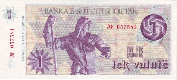 С целью обуздать инфляцию и уменьшить нехватку денежных знаков в наличном обороте, в начале 1992 года правительством Албании было принято решение выпустить наряду с «обычными» леками, так называемые «валютные леки, lek valutё». Оформление этих знаков было проще, чем у обычных леков и оно было одинаковым: на лицевой стороне – изображение сталевара, на обороте - стилизованное изображение вышек линии электропередачи и генератора. Различались купюры только цветом.