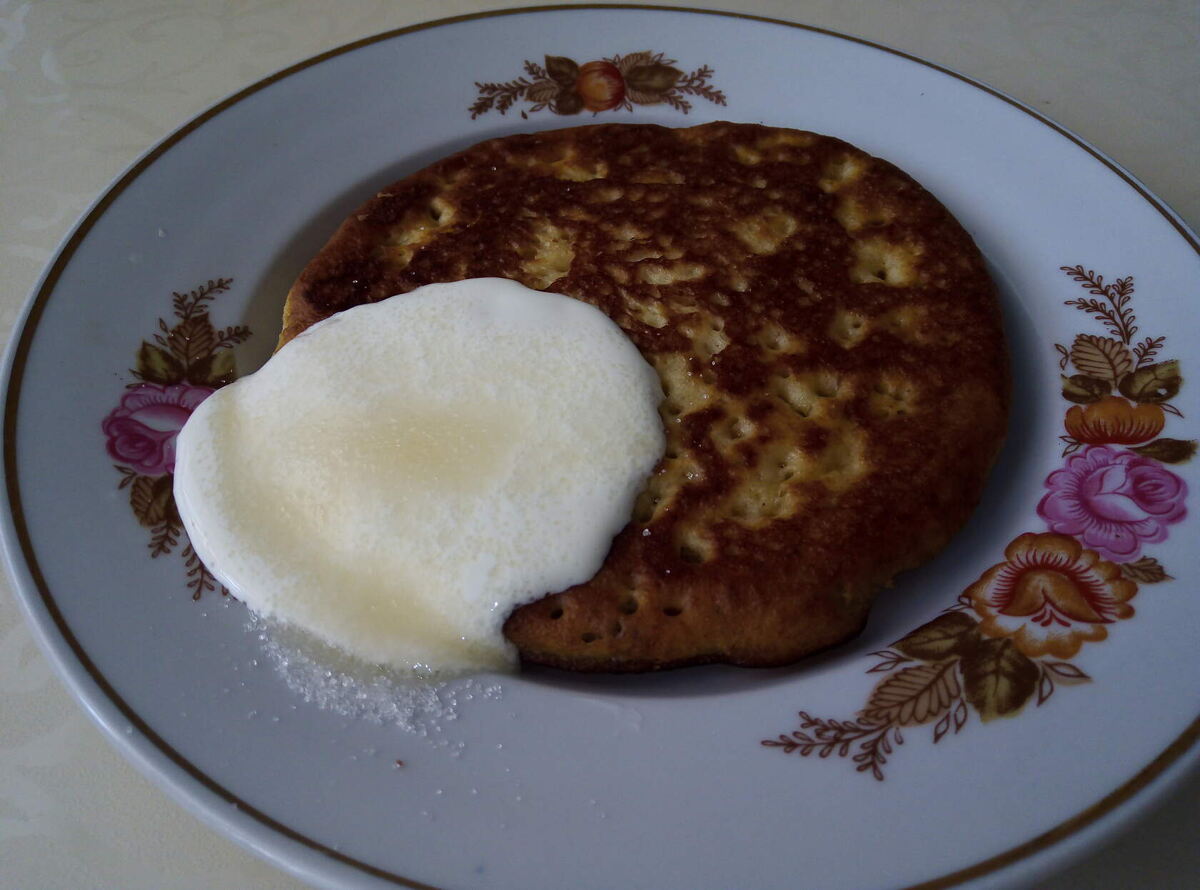 Ингридиенты: 1. Кефир – 1 стакан 2. Яйцо – 2 шт. 3. Манка – ½ стакана 4. Мука – 1,5 стакана 5. Подсолнечное масло – 6 ст.ложек 6. Сода – неполная чайная ложка, соль – щепотка, сахар – по вкусу Приготовление: 1. Все ингридиенты взбить, вымешать до отсутствия комочков. Оставить тесто на 30 минут. 2. Сковороду нагреть, смазать подсолнечным маслом. Наливать тесто половником. Печь оладьи на среднем огне до готовности. Приятного вам аппетита, друзья, и творческих идей на вашей кухне!