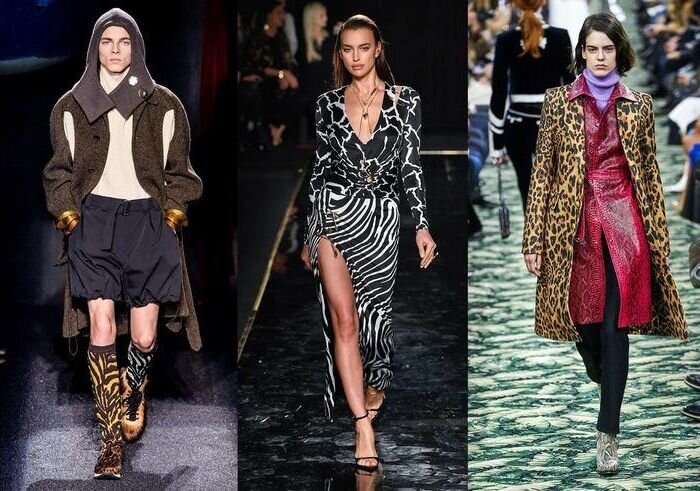 Этот яркий импульсивный стиль зародился в глубокой древности, когда пещерные люди начали использовать в качестве одежды шкуры животных. Аnimal (англ.) - переводится как животное, это направление имитирующее шкуры животных, кожу рептилий или панцирь. Ещё недавно это стиль считался китчем и безвкусицей, но при правильном подборе общего образа, сейчас он стал трендом и набирает популярность. Чтобы образ выглядел гармонично очень важно соблюдать правило - использовать не более одного предмета с анималистичным принтом. Ткани допустимы абсолютно любые, рисунки можно наносить на практически любую поверхность - обувь, сумки, одежда - от галстуков до нижнего белья, головные уборы, бижутерия. Сейчас становятся все более популярными 3D изображения животных на футболках, бейсболках, сумках, ранцах, рюкзачках. Макияж - классический, можно стрелками сделать "кошачьи" глаза, для тематических вечеринок и подиумов используют стилизованный анималистичный макияж с изображением мордочек животных полность