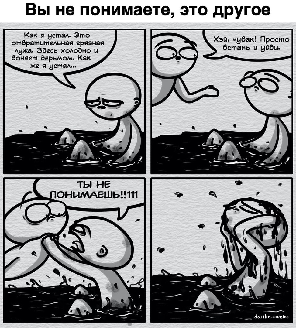 Часто видела эту картинку и всегда с неё смеялась... Раньше... Уже не смеюсь. В моём окружении есть минимум два человека с такой же проблемой. Один вместо того чтобы забыть что в детстве ему не додали конфеток и брат запретил идти на борьбу, постоянно пережёвывает эту тему. Любой наш разговор сводится к тому, что его бедненького с детства запрягали помогать семье ( учитывая что он самый младший и его мать носилась с ним как с писаной тобой, обделяя остальных детей). И ладно бы ему было лет 15-18... Но нет. Это очень взрослый человек, старше меня. У него золотые руки, была собственная семья, но вместо того, чтобы перестать страдать хернёй и помочь себе, дочери, он только всё портит. Дочь попрекает тем, что если бы не он, она бы осталась с горе мамашей и хрен знает что бы сейчас с ней было. Старшую сестру тероризирует вечными придирками и требованиями. Старших братьев и вовсе всегда игнорировал и винил во всех своих бедах.