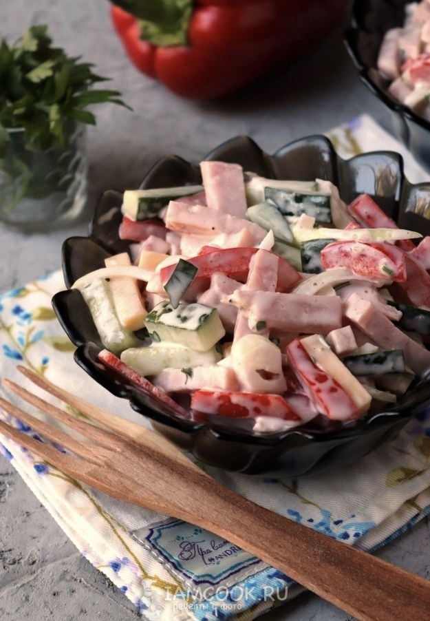 Как и все женщины я готовлю. Не скажу, что я из той категории, которая пропадает на кухне. Скорее это необходимость, как говорится «надо и все». Блюда предпочитаю простые и быстрые в приготовлении, чтобы оставалось время на другие дела. Недавно подруга, которая долго живет за границей (в Италии) поделилась новым рецептом сытного салатика. Ну, а я не стала откладывать в долгий ящик и решила порадовать близких заморским явством с российскими ингредиентами (в смысле в любом продуктовом магазине можно купить такие продукты). Скажу сразу, что у салата нет как такового названия. В Италии многие блюда называются «piatto delizioso», что означает «вкусное блюдо». Давайте назовём его «ветчинный салатик», так как ключевой ингредиент в нем именно ветчина. Ну, что, одеваем фартуки и вуаля!))) Начнём: Ингредиенты: Всего 5 минут времени и вуаля) Кто сказал, чтобы накормить всех домашних сытно и вкусно, нужно поселиться на кухне?.. В следующий раз обещаю такой же бюджетный и вкусный экспресс-реце