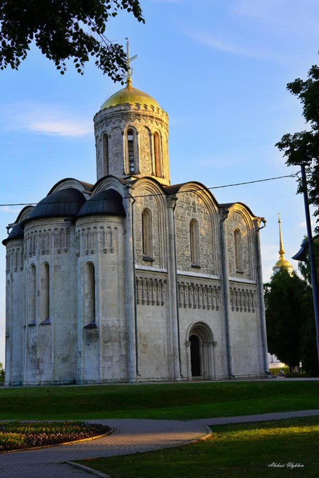 Статья 23.10.1944 года из архива архитектора Александра Машкова ************************************************************************ .....Для этого времени в истории Владимира характерен так же интерес к древним памятникам зодчества и их конечно своеобразно понятой "реставрации". Правительство не раз напоминает о бережном сохранении рассыпаемых валов города, свидетелей его древней славы. Лишь обветшавшие рубленые стены Среднего города, разбираются в 1750 г. Погоревшая в 1778 г. церковь Спаса перестраивается заново, причем строитель стремится перенести на новую постройку старые формы - аркатурно-колончатый пояс, порталы, обработка штука под кладку из белого камня. Церковь Георгия, также пострадавшая от пожара, перестраивается из старого камня с сохранились в своем основании древних стен, но, конечно, в новом духе провинциального барокко. Проявляется забота и о сохранении обветшавших Золотых ворот, правда их "реставрация" искажает их верх и осложняет не идущими к формам древн