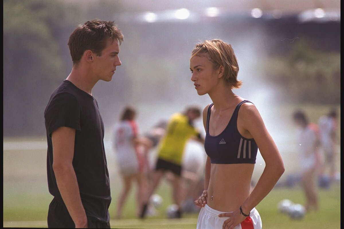 История британской девушки, которой не безразлична судьба футбола, а также ее бойфренда Джулз. В отличие от большинства своих сверстников, она стремится заниматься тем, что ей интересно, не обращая внимания на то, как к ней относятся окружающие. На фоне того, как девушка пытается пробиться в женскую футбольную школу, она встречает свою любовь. На протяжении всей своей жизни она будет бороться за то, во что верит, и защищать свои мечты. Интересные факты 1. Бюджет фильма - всего 10 миллионов долларов. 2. Фильм был снят в реальном футбольном клубе "Манчестер Юнайтед", но ни один игрок из этого клуба не играл в нем. 3. В фильме использовались только настоящие футбольные мячи. 4. Снимали фильм в Лондоне и его окрестностях. 5. Для съемок был использован настоящий стадион "Олд Траффорд" - домашняя арена "Манчестер Юнайтед". 6. Актеры, которые играют главных героев, очень похожи на главных звезд клуба Дэвида Бекхема и Стива Феррона. 7.