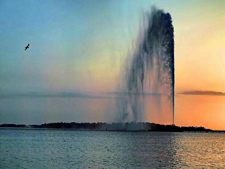 Фонтан Фахда Фонтан, построенный в 1983 году неподалеку от здании администрации города Джидда (Саудовская Аравия). Фонтан Фахда представляет собой струю воды, бьющую вверх на высоту 120 метров. После постройки фонтана власти приняли решение построить новый фонтан. Новый фонтан запустили в 1985 году. Новая механика выбрасывала воду на 312 метров. Поскольку постройка фонтана пришлась на правление короля Саудовской Аравии Фахда ибн Абдель Азиз Аль Сауда, поэтому фонтан нередко называют фонтаном короля Фахда. Иногда просто фонтаном Джидды. Общая масса воды, которая постоянно висит над фонтаном, составляет примерно 18,8 тонны. Через несколько лет эксплуатации было установлено, что стальные трубы фонтана очень сильно страдают от коррозии. В конце 1987 года была установлена анодная защита, предотвращавшая разрушение металла.