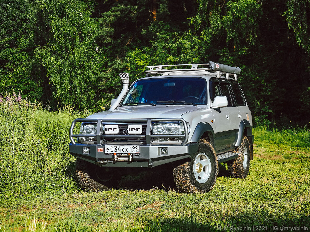 История этой "Мечты" оказалась интересной - многие годы на ней ездила девушка, выполняя обычные бытовые задачи: детей в школу отвезти, за продуктами в магазин съездить, потом автомобиль был продан знакомому, претерпел некоторые переделки, после чего был снова выкуплен назад и снова оказался в коллекции портала OffRoadClub.Ru, где и находится по сей день, радуя нас возможностью вернуться в прошлое. "Восьмидесятка" сохранилась практически в оригинальном виде, были установлены силовые пороги и силовые бамперы РИФ (передний под лебедку, а задний с двумя калитками для запаски или, как в нашем случае, для калитки запаски и калитки для запасных канистр). На крышу установили экспедиционный багажник и маркизу РИФ, смонтировали шноркель Telawei. Подвеску заменили на усиленную от РИФ, а обувку выбрали топовую: премиальные внедорожные шины Mickey Thompson Baja Boss размером 285/75R16. Под капотом установлен самый навороченный 24-клаппанный турбодизель 1HD-FT объемом 4.2 литра и мощностью 170 л.с.