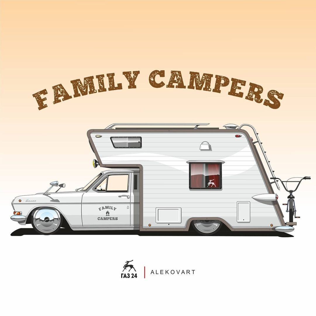 Сегодня я хочу рассказать вам про работы еще одного талантливого художника из России. Этот парень очень любит кастомизировать автомобили советских времен, особенно превращая их в невероятно крутые олдскульные кемперы, на которых очень хочется отправиться в путешествие прямо сейчас. Знакомьтесь — ALEKOVART. Он не штампует работы пачками, просто потому что каждая очень детально проработана и на создание, вероятно, уходит куча времени. Давайте начнём вот с этого потрясающего кемпера на базе ВАЗ-2102. Вот что пишет сам автор: «Море, пальмы, солнце и дом, там, где ты его припарковал. Кэмпер на базе Ваз 2102 (Турист). Подвеска само собой на воздухе». Выглядит достаточно хипстерски, особенно учитывая изображение Боба Марли и слоган «Money Can't Buy Life», т.е. «За деньги жизнь не купишь». А вот еще одна похожая концептуально работа была создана по заказу Family Campers. «Задумка была такова: взять ГАЗ "Трофим" и разместить на нем жилой модуль. Передняя часть и двери от Волги 24й. Модуль с от