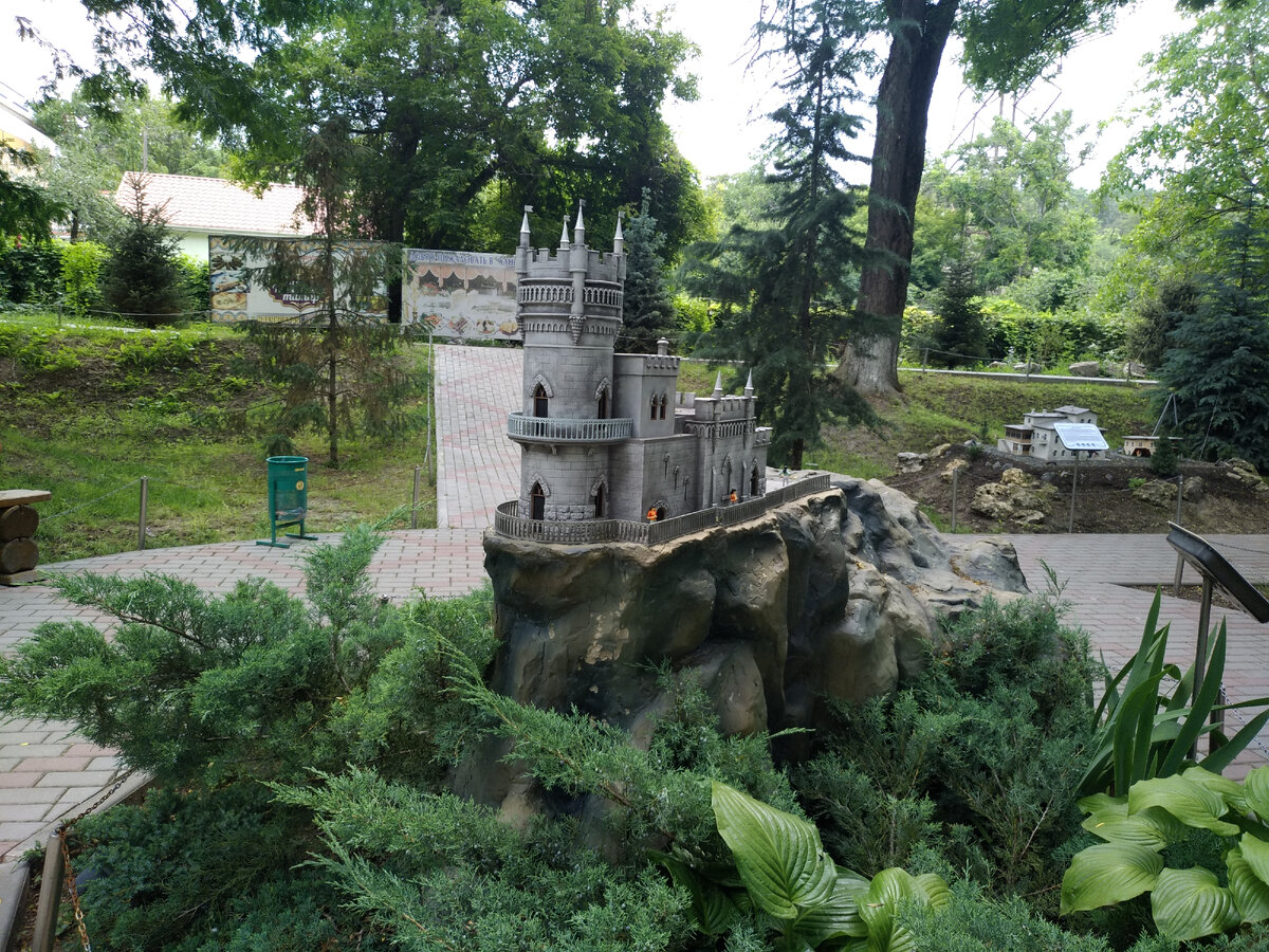 Если вы отдыхаете в Крыму очень рекомендую посетить парк миниатюр в г. Бахчисарай. В одном месте сосредоточили макеты всех достопримечательностей полуострова. При входе вас встретит аэропорт Симферополя. Здесь в одном месте рядом можно увидеть и дворцы, и дачи писателей, и административные здания всего Крыма. Объекты Ялты, Симферополя, Судака, Феодосии и других городов стоят бок о бок. Ласточкино гнездо символ Ялты и здесь его можно рассмотреть во всех подробностях. Церкви и Храмы расположились по соседству с дачами и другими объектами. Незаметно дорога вывела нас к контактному зоопарку. Очень понравилось, животные чистые, ухоженные. Здесь же продают корм для зверей, можно купить и покормить. Вообще хочется отметить разнообразие животных, здесь и птицы и хищники, копытные животные и обезьянки. Далее в парке миниатюр целая аллея мультипликационных героев. С удовольствием ходили и вспоминали название мультфильмов, наиболее запоминающиеся фразы и песенки из них. В
