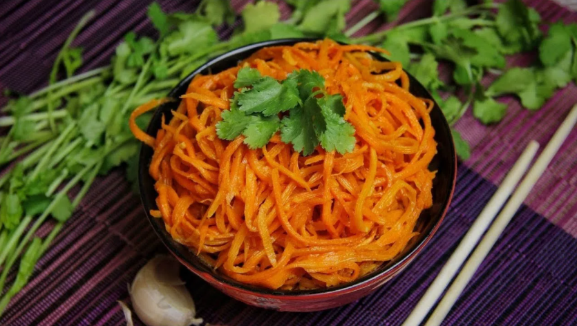 Ингредиенты: Приготовление: Очищенную морковь натираем на терке (лучше на специальной немецкой) в глубокую миску и оставляем в покое, чтоб морковь дала сок. Для этого требуется 3-4 часа. Затем в середине морковной кучи делаем небольшое углубление, кладем туда соль и красный острый молотый перец, но не перемешиваем! На сковороде нагреваем растительное масло до появления еле заметного дымка, выливаем это масло в углубление в морковке и снова не перемешиваем, а закрываем крышкой и ждем 10 минут. По истечении этого времени наконец-то все перемешиваем, кладем щепотку раздавленных зерен кориандра, раздавленный чеснок, соевый соус и свежевыжатый сок лимона. Снова все перемешиваем. Можно сразу начинать есть, а можно накрыть крышкой, подождать минут 10-15. Всем приятного аппетита! :)
