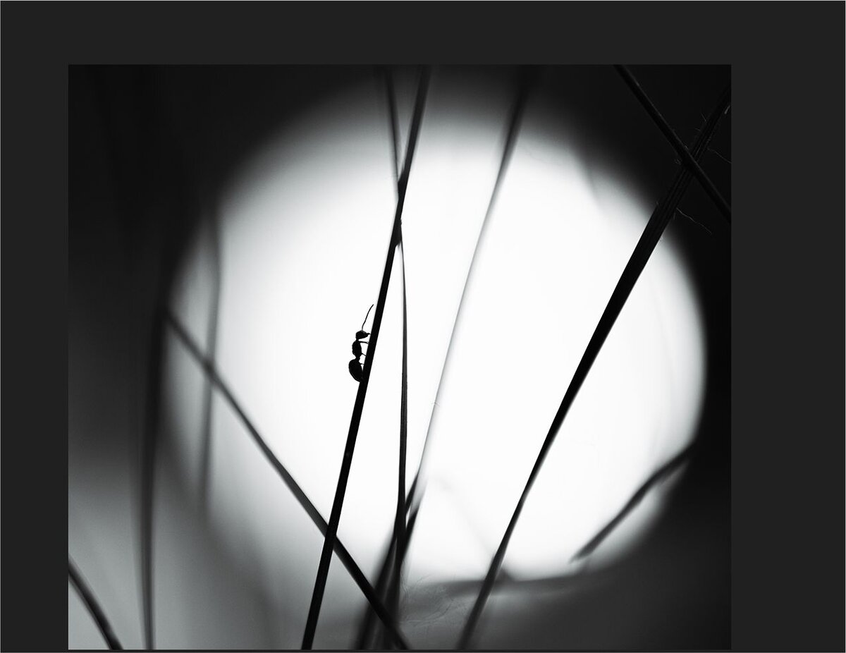 Следующий снимок не супермакро, а вполне себе средней крупности, но тут есть композиционная составляющая и удаление цвета позволяет, опять же, больше следить за линиями.
