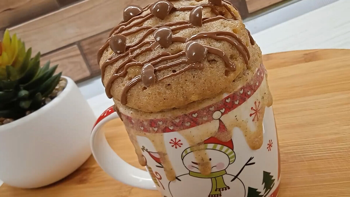Размешиваю ингредиенты в кружке и готовлю десерт. Кекс с яблоком и корицей без духовки за пару минут.