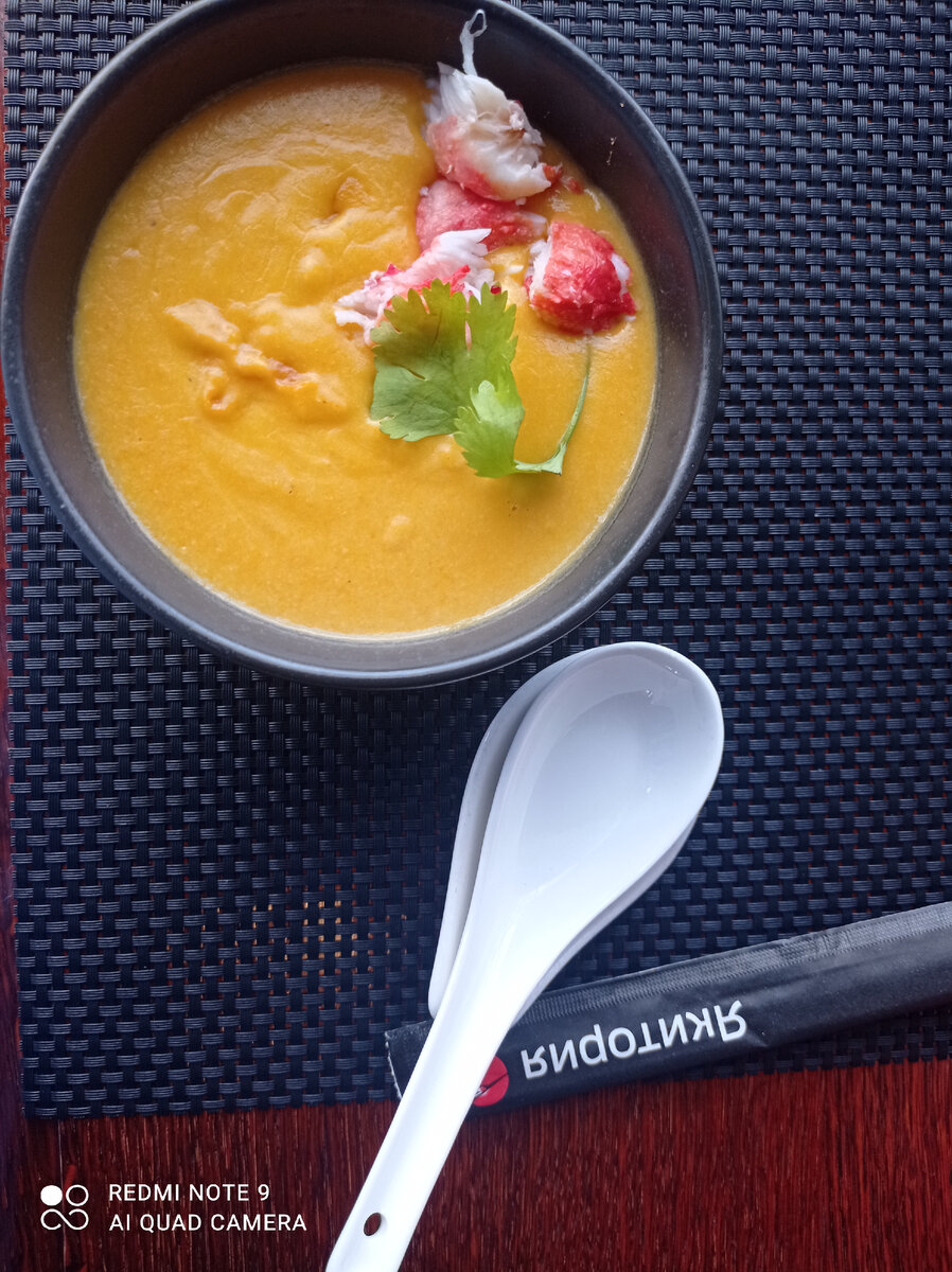 Я хоть и не часто хожу в рестораны, но все же иногда бываю там. Один из любимых это ресторан японской кухни Якитория. Суши я не очень люблю, даже васаби и имбирь которые идут с ними всегда в комплекте никогда не ем. Но вот кукурузный суп в Якитории просто бомбический😋... А так как в связи с последними событиями доступ в рестораны, кафе и бары у нас есть не у всех я решила приготовить этот суп сама. Немного порылась в интернете, нашла на мой взгляд наиболее подходящий рецепт и приготовила. И знаете, получилось ничуть не хуже , чем в Якитории. Да и ингредиентов тоже не много нужно, но гастрономическое удовольствие я вам гарантирую. Итак нам понадобится: Кукурузу я вообще не люблю и не понимаю, как ее можно есть, но в этом супе она настолько органично вписывается , что я готова закрыть глаза на ее наличие. Готовим: Бульон у меня был заморожен и достаточно "крутой". И я как обычно забыла его сразу достать из морозилки, поэтому пришлось импровизировать. Нужно дать ему закипеть. Кстати д