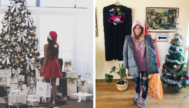 Для того чтобы лучше воспринимать информацию, люди в своей голове неосознанно делят большие группы на меньшие. Помните, еще в школе нас обучали при помощи схем и таблиц. Это работает и в повседневной жизни. Например, всех девушек можно разделить на 2 группы по какому-нибудь признаку, даже несмотря на то что каждая из них уникальна и неповторима. Мы в AdMe.ru решили в шуточной форме показать: хоть мы все и разные, у нас много общего. Надеемся, вы узнаете в этой статье себя. 1. Либо у тебя многочасовая фотосессия с елкой и подарками, либо ты просто радуешься празднику © babulyaa / instagram, © christmaskissed / instagram 2. Instagram нужен либо чтобы себя показать, либо для души © sad_chikova / instagram, © gold_farb / instagram 3. Либо ты можешь открыть свой магазин косметики, либо пользуешься тушью, которую покупала еще пару лет назад © joni_zaq / instagram 4. Нет, ну тут очевидно, какой букет покорит сердце любой девушки. Мы не знаем людей, которые устояли бы перед куриными ножками ©