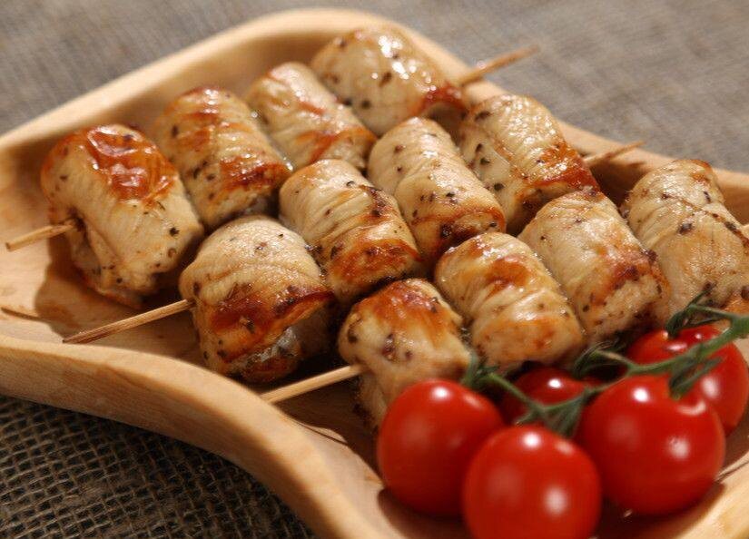 Нам понадобится: ▪️куриные бёдра 800 г ▪️красный лук 1 шт ▪️чеснок 3 зубчика ▪️сок половины лимона ▪️копченая паприка по вкусу ▪️соль, перец по вкусу ▪️шпажки К шашлычкам ( можно использовать и другие овощи, как больше нравится) у меня ▪️сладкий перчик 1/2 шт ▪️черри 5-7 шт ▪️шампиньоны 3-4 шт 1. Нарезаем бердышки на небольшие кусочки, полукольцами красный лук, на толстенькие слайсы грибочки и сладкий перец. 2. Замочим шпажки в горячей воде, чтобы они не подгорели в духовке. 3. Смешаем курочку с солью и перцем, паприкой, луком, соком лимона и чесночком. Отправим мариноваться на час в холодильник под пищевой пленкой. 4. Распределяем курочку, грибочки, черри и перчик по шпажкам. Кладём поверх большой формы, слегка сбрызнем маслом и отправим запекаться в разогретую духовку на 30-40 минут при 200 градусах. Приятного аппетита❤️