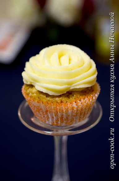 Моя подруга решила устроить 5 ноября День Морковки и пригласила поучаствовать в ее флешмобе по этому случаю. У меня как раз лежал в закладках рецепт морковных капкейков, дело осталось за малым - приготовить их. Состав очень прост, так что вам не придется бегать по магазинам в поисках какого-либо ингредиента. Для шапочки я использовала масляный крем, но вы можете взять любой, думаю, что здесь отлично подойдет крем из сливочного сыра (просто мне было лень идти в магазин, а дома для крема было только масло). Морковные капкейки получились не только очень вкусными (в состав входят орешки, которые чудесно дополняют морковный вкус), но и красивыми. Они не только украсят собой праздничный стол, но и станут прекрасным подарком. Рецепт сих чудных морковных капкейков я взяла в книге "10 000 капкейов" Сьюзен Ти. На 12 штук: Для ванильного масляного крема: Морковку натереть на мелкой терке. Орехи измельчить ножом или блендером, но не стоит сильно усердствовать, так как нужны просто маленькие кусочк