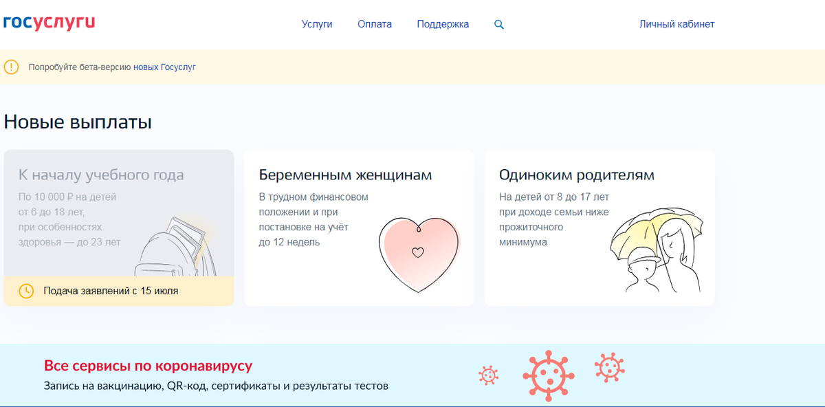 Услуги по новым выплатам беременным женщинам и одиноким родителям не оказываются в центрах "Мои Документы" в Тюменской области. Подавать заявления на получение этих пособий необходимо на портале Госуслуги. Виджеты по двум, объявленным Президентом РФ, выплатам уже появились на главной странице портала. Выплата в 10 тысяч рублей на детей от 6 до 18 лет пока не доступна. Кликнув на активные виджеты, можно получить всю необходимую информацию по услугам и тут же заполнить заявления. Выплата беременной женщине положена, если она оказалась в трудном финансовом положении, и назначается при условии, если среднедушевой доход семьи не больше прожиточного минимума на душу населения в регионе. В Тюменской области он составляет 11 748 рублей на каждого члена семьи. Услуга доступна при постановке беременной на учет до 12 недель срока. Выплата одиноким родителям также положена, если доход семьи ниже прожиточного минимума, и назначается на детей от 8 до 17 лет.