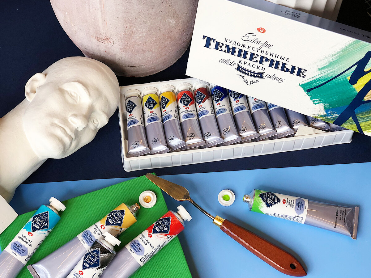 Чтобы попробовать писать аутентичной темперой, не нужно искать в старых фолиантах средневековые рецепты красок. Можно попробовать готовые к применению темперные краски на основе яичной эмульсии, выпущенные французским производителем высококачественных художественных материалов – Sennelier. А еще под данным брендом можно найти необыкновенно мягкую высокопигментированную пастель, большое количество вспомогательных средств для масляной и акриловой живописи, медовую акварель и многое, многое другое.