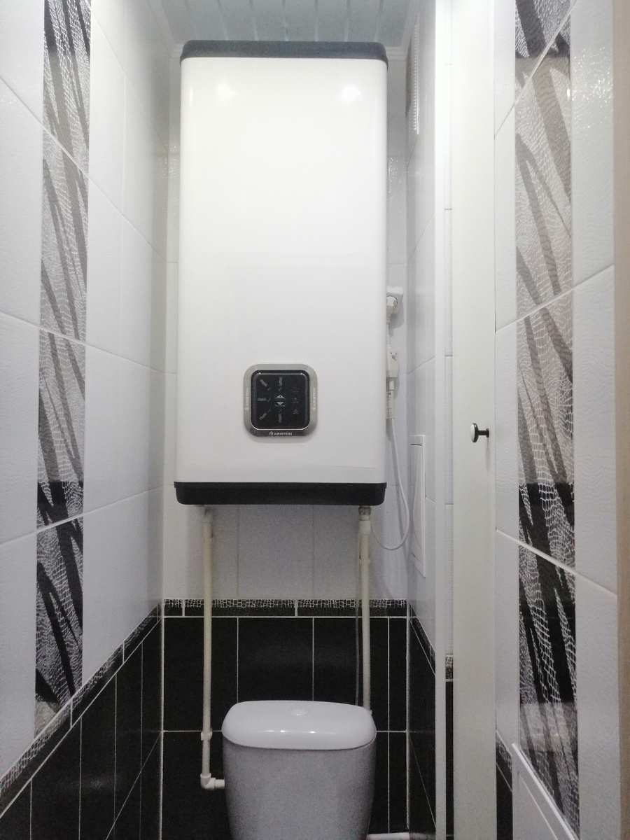 В нашей стране есть такая традиция отключать горячую воду. При этом срок отключения может варьироваться от двух недель до месяца и более. 2 раза в год это регулярно, не считая аварий. Взрослый человек, привыкший к условиям цивилизации, не комфортно себя чувствует без ежедневного душа, а что уже говорить о детях. Особенно, если на улице жара. Технологии не стоят на месте и человек давно изобрёл водонагреватель, для комфортного существования без горячей воды. Когда мы переехали в новую квартиру, первым делом установили водонагреватель. Наши дети привыкли ежедневно принимать ванну. Не представляю, как бы я им грела воду в чайнике и мыла их в тазике. А у меня трое мальчишек. А так делает большенство в нашей стране. Особенно грудничкам, каждый день нагревают воду в детскую ванночку. Мы купили плоский, прямоугольный водонагреватель, на 80 литров. Нам на 2х взрослых и 3х детей вполне хватает помыться. Разместили его в туалете, над сливным баком. Там он абсолютно не мешает. Вид вполне э