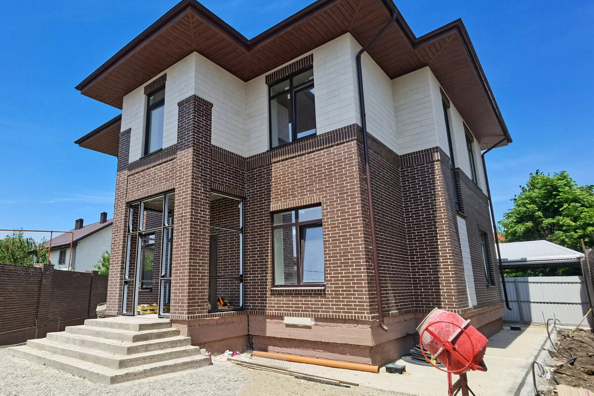 Реализованный проект двухэтажного дома в стиле Райта