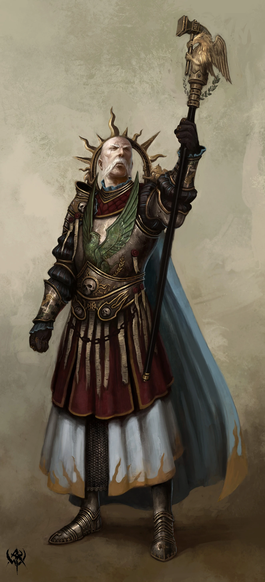 является главой Культа Зигмара и самым могущественным понтификом в Империи. Он - набожный и благочестивый человек, который крайне предан искоренению Хаоса во всех его проявлениях. Когда Верховный Теогонист сопровождает армию в бою, он как правило едет на великолепном боевом алтаре Зигмара, вдохновляя солдат на великие и геройские подвиги, а также повергая последователей Хаоса могучими ударами и словами божественной силы. Фолькмар - святой ужас на поле битвы, человек, дерущийся с яростью самого Зигмара. Говорят, что его душа сделана из стали, и он борется с пагубным влиянием Хаоса каждой частичкой своего существа. «Фолькмар! Взгляните только на него. Он никогда не дрогнет и никогда не отступит. Некоторые говорят, что он даже не спит. Всё в нем подчинено великой задаче — сдерживанию Тьмы. Он не может делать всё в одиночку, но с другой стороны, он не нуждается в советчиках, поскольку его деяния вдохновляют нас стремиться к величию» — сир Альбрехт Вальдорф, наставник орде