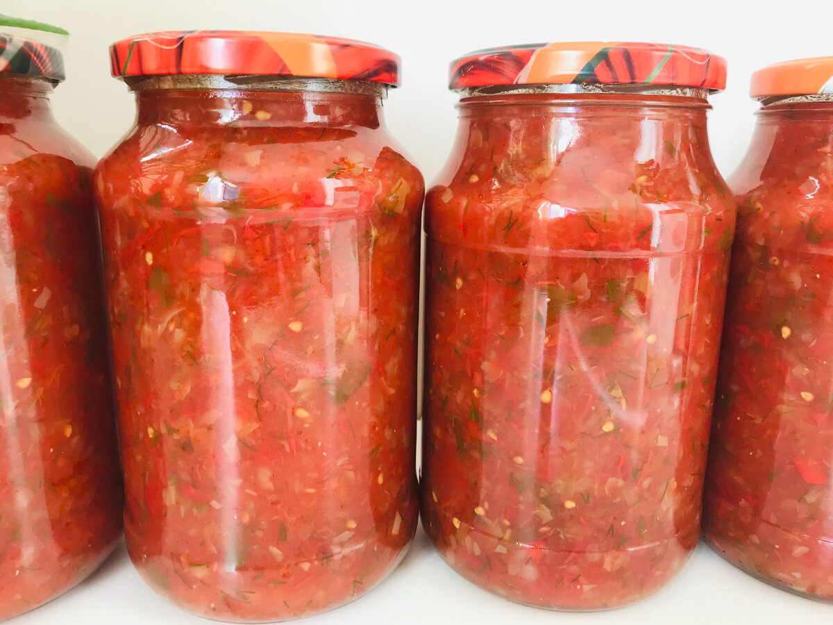 Простая и, при этом, очень вкусная приправа из томатов и болгарского перца очень выручит любую хозяйку. Такую приправу можно добавлять в зажарку для супов, в различные вторые блюда, например, в голубцы, тушеный картофель, спагетти. Она идеальна и в качестве соуса - к рыбе, мясу, пельменям или мантам. Перед подачей на стол в готовую приправу можно добавить измельченный чеснок или натертый корень хрена. Для того, чтобы приправа была более густая и насыщенная, берите мясистые томаты и перец. За неимением погреба, банки с приправой можно хранить при комнатной температуре подальше от отопительных приборов. РЕЦЕПТ: вес неочищенных овощей томаты - 4 кг, перец болгарский - 1 кг, перец острый - 1 шт. (по желанию), зелень (укроп, петрушка) - 1 пучок, масло растительное рафинированное - 50 мл, соль без добавок - 1 ст.л., сахар - 2-2,5 ст.л. выход 4 банки по 950 мл Друзья, спасибо всем, кто ставит лайки, пишет комментарии, подписывается на мой канал, делится моими статьями и видео в социальны