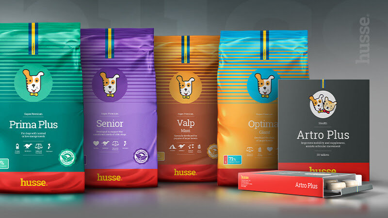Глюкозамин и хондроитин, содержатся в некоторых сухих кормах Husse, таких как, например, Prima Plus, Senior, Optimal Giant, Valp Maxi. В качестве естественного источника глюкозамина во всех сухих кормах Husse используются зеленые мидии.