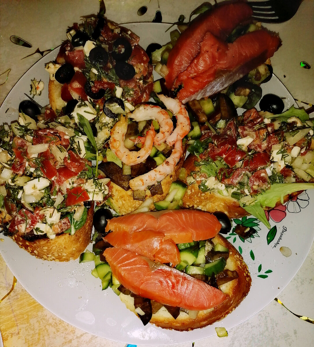 Можно украсть маслинами и даже добавить из в пару брускетт с помидорами, тоже вкусно сочетаются 😉