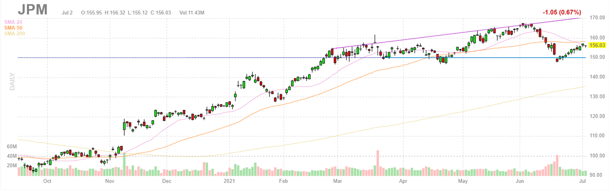 О банках пора задуматься, отчитываются они самые первые и все представят отчёты на следующей неделе В отбор из этого сектора у нас попадают 4 известных всем инвесторам банки JPMorgan Chase & Co. $JPM - финансовая холдинговая компания, занимается инвестиционным банкингом, финансовыми услугами и управлением активами Wells Fargo & Co $WFC - банковская холдинговая диверсифицированная компания в сфере финансовых услуг. Компания предоставляет банковские, инвестиционные и ипотечные продукты и услуги через банковские отделения и офисы, через Интернет и другие каналы распространения физическим лицам, предприятиям и учреждениям в штатах, округе Колумбия и в странах за пределами США. Citigroup Inc $С - многопрофильная холдинговая компания, предоставляющая широкий спектр финансовых продуктов и услуг, включая банковское обслуживание и кредитование физических лиц, корпоративное и инвестиционное банковское обслуживание, брокерские операции с ценными бумагами, услуги торговли и ценных бумаг, а так