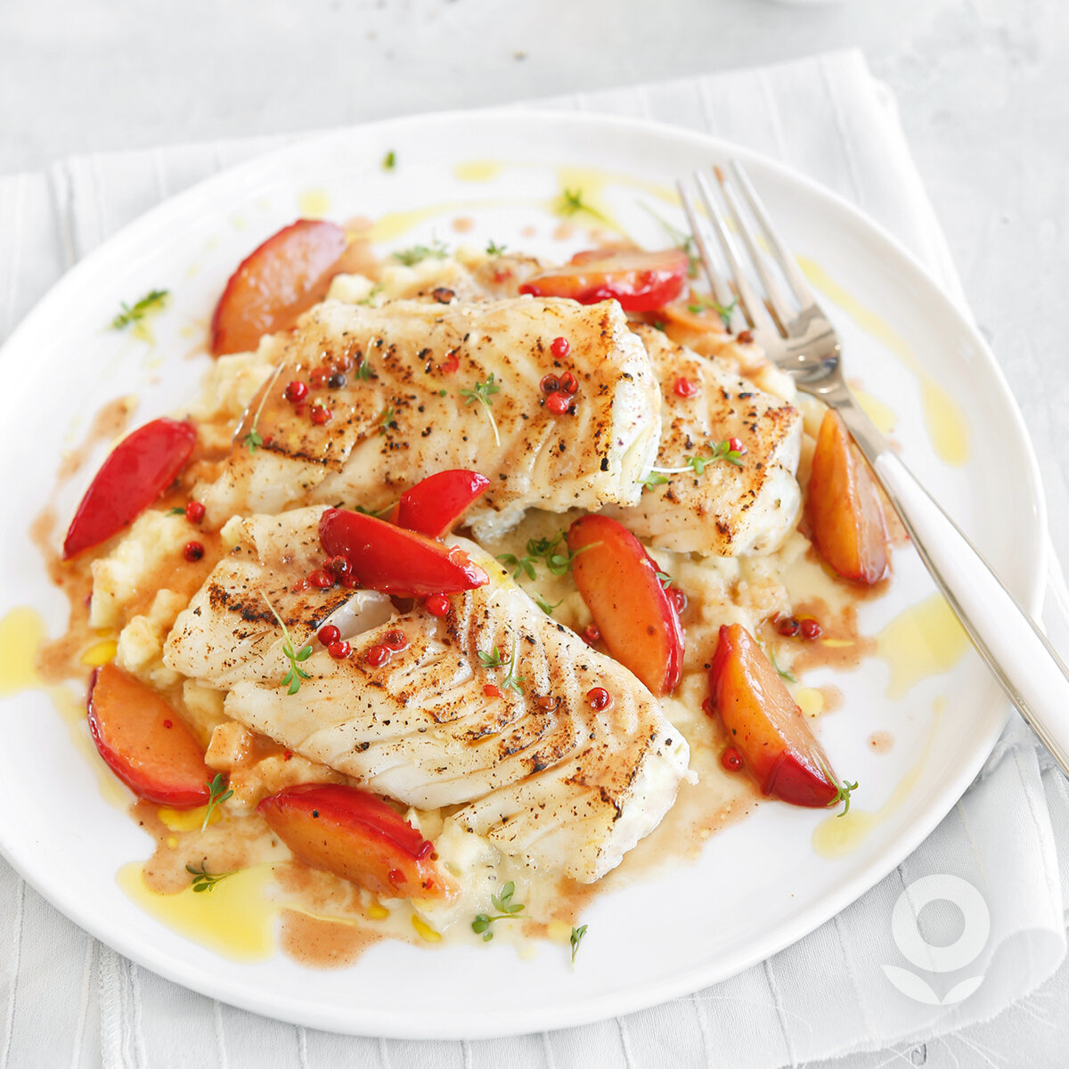 ТЕЛЕЦ. Треска в винно-сливовом соусе с яблочным пюре