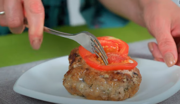 Ингредиенты на рецепт котлет: Фарш свинина + говядина 500 гр. Баклажан 250 гр Яйцо 1 шт. Репчатый лук 1 гол. Чеснок 2 зуб. Хмели-сунели 0,5 ч.л. Кориандр 1/3 ч.л. Зира 1/3 ч.л. Для панировки сухари и мука Растительное масло для жарки. Соль, черный красный перец по вкусу! Зелень кинза и укроп. Помидор 1 шт. Итак, берем нарезаем баклажан(шкурку снимать не будем у нас они молоденькие)кладем в измельчитель, сюда же добавляем репчатый лук(небольшую головку)и пару зубчиков чесночка измельчили добавляем в фарш, затем добавляем хмели-сунели, кориандр, зиру, солим, черный красный перец добавляем яйцо Нарезаем мелко зелень(укроп ,петрушку)и добавляем к фаршу и все перемешиваем и даем фаршу постоять 15 мин. Берем сковородку наливаем растит масло, прогреваем масло и начинаем формировать котлеты, еще раз перемешиваем фарш, берем нужное количества фарша и отбиваем в руках фарш(чтобы при жарке они не распались)по 1-2 мин поодбиваем каждую котлету, обваливаем в муке и кладем в сковородку