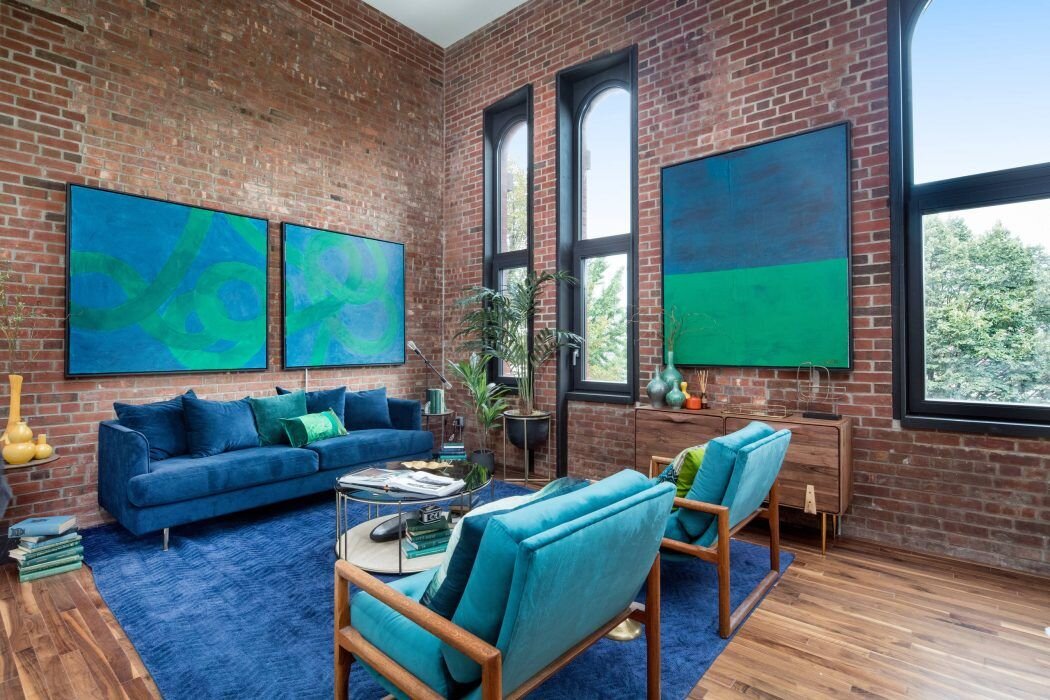 Кирпичная кладка и лофт созданы друг для друга. В индустриальных интерьерах стена из кирпича может полностью заменить финишную и декоративную отделку. Особенно выразительно кирпич смотрится в просторных помещениях с высокими потолками и панорамными окнами.