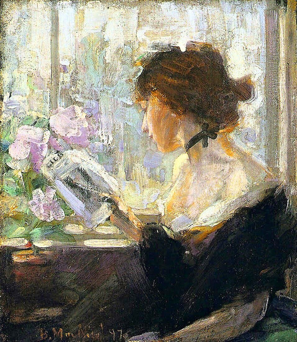 Обложка: "Элизабет за чтением" Источник: https://readingandart.blogspot.com/2014/08/bessie-macnicol.html.