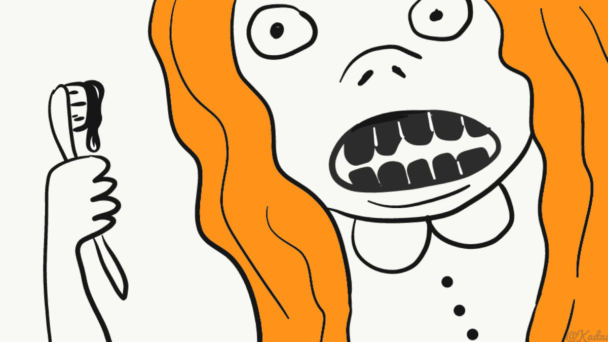 Однажды маленькая девочка встала утром рано и пошла в ванную. За окном светило яркое солнце. Девочка только зашла в ванную, как вдруг дверь закрылась. В ванной было тускло. Малышка подошла к зеркалу и увидела перед собой стаканчик с зубными щетками. Она взяла одну щетку. Но зубную пасту не увидела. Тогда девочка начала искать зубную пасту. Она посмотрела в шкафчике, во всех ящиках, но не нашла. Затем решила заглянуть под саму ванну. Когда она легла на пол и посмотрела под ванну, то увидела внизу в стене маленькую чёрную дверь. Девочке стало любопытно и её рука потянулась к двери, чтобы открыть. Когда маленькая чёрная дверь открылась из неё вылезла мохнатая чёрная рука, которая протянула малышке зубную пасту. Девочка взяла эту пасту и мохнатая чёрная рука мгновенно втянулась в дверь обратно. Зубная паста была как новая, не вскрытая. Девочка выдавила зубную пасту на щетку и принялась чистить ею зубы. Чистит, чистит, чистит, чистит…. Смотря в зеркало, юная леди увидела, что её зубы стал