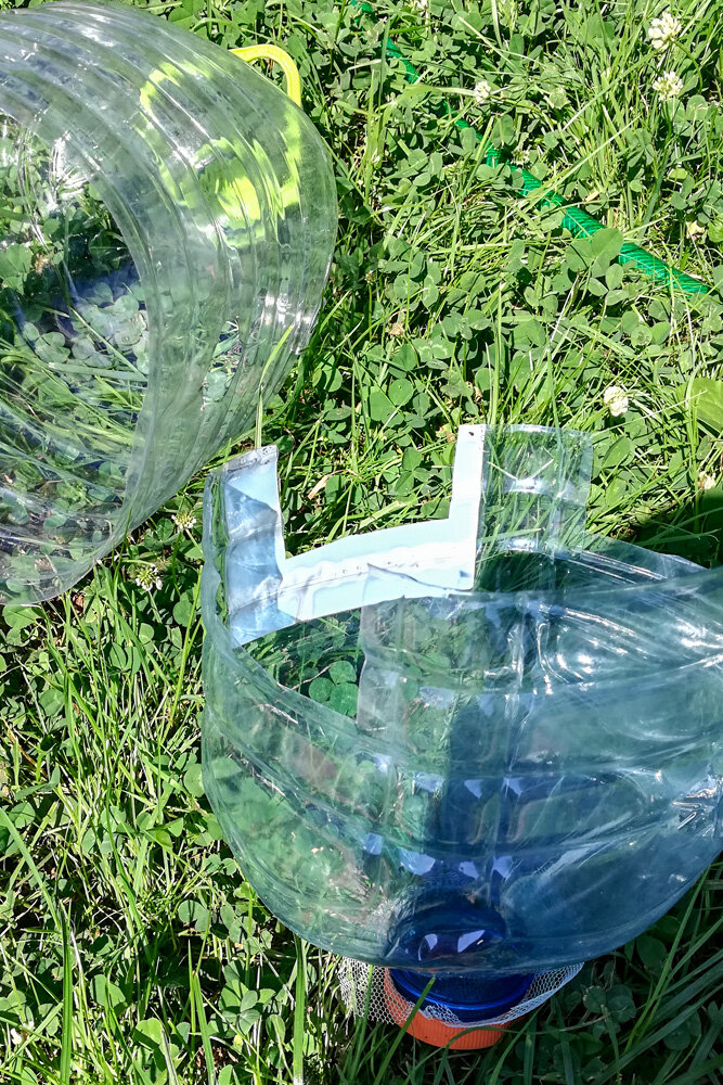 Пришло очередное лето, нужно ставить бассейн на даче. Вода всё такая же железистая, поэтому чищу её от железа перекисью водорода. Как чищу, подробно писал в заметках В этот раз немного усовершенствовал метод. С перекисью ничего не менял, всё так же, как в заметках. А вот с очисткой воды после купания произошла небольшая оптимизация. Вместо ведерка с синтепоном, запихнул синтепон в сам насос вместо бестолкового картриджа. Фильтрует отлично, промывать можно чуть ли не раз в сутки. А картридж за это время раз 100 промыл бы. Ну и смастерил из двух пластиковых пятилитровых банок скиммер для сбора всякой плавающей на поверхности мелочевки. Часа за полтора собрал всех мух, пух и прочая и прочая, что обычно плавает на поверхности. Скиммер прикрепил в водозаборному отверстию при помощи фильтра-заглушки, которая шла в комплекте к бассейну. Просто прорезал в пластиковой банке отверстие, просунул туда заглушку и вставил всё это в водозаборник. Держится отлично. Видео работы скиммера: Я знаю, что е