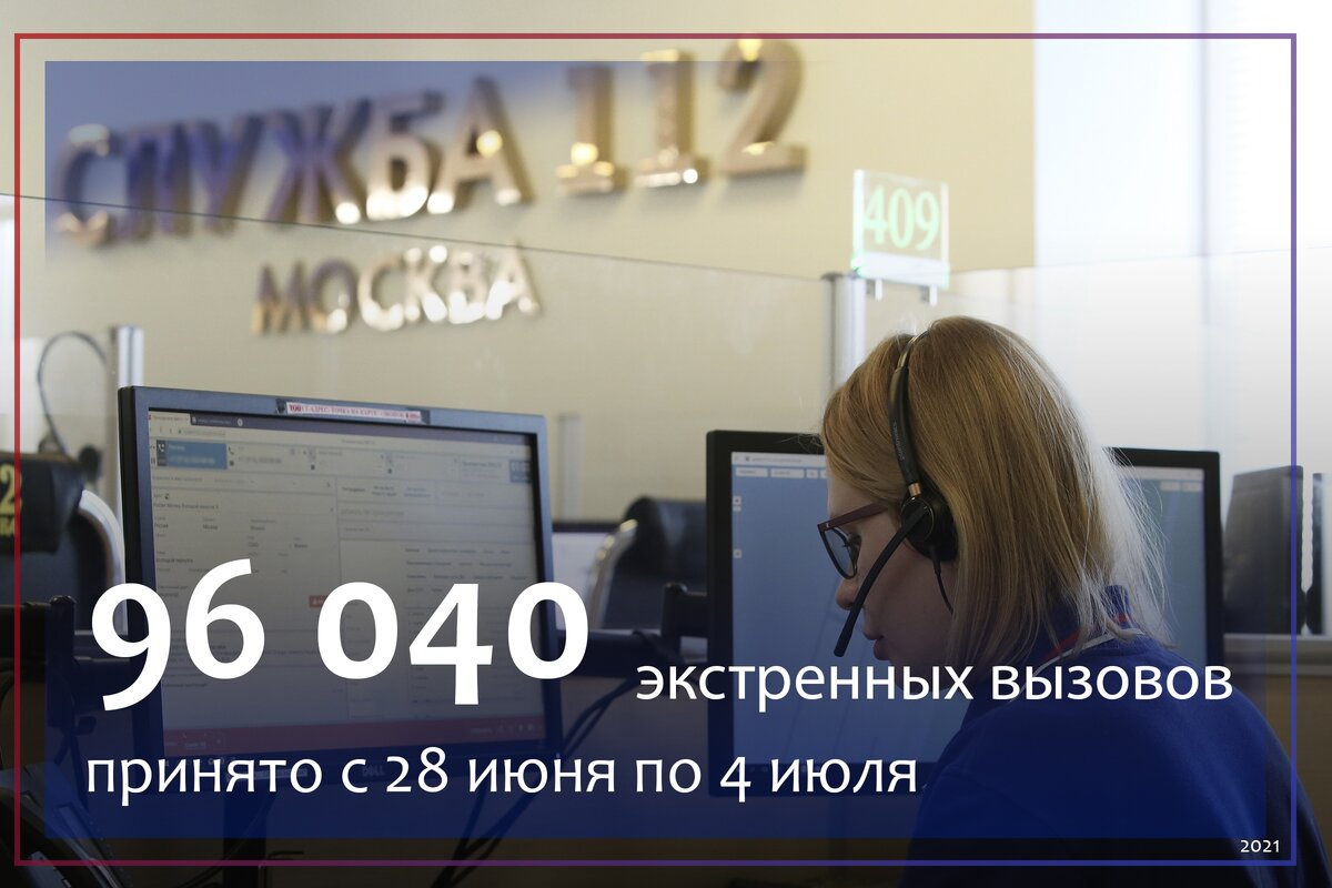 За неделю с 28 июня по 4 июля Службой 112 Москвы принято и обработано 96040 вызовов.