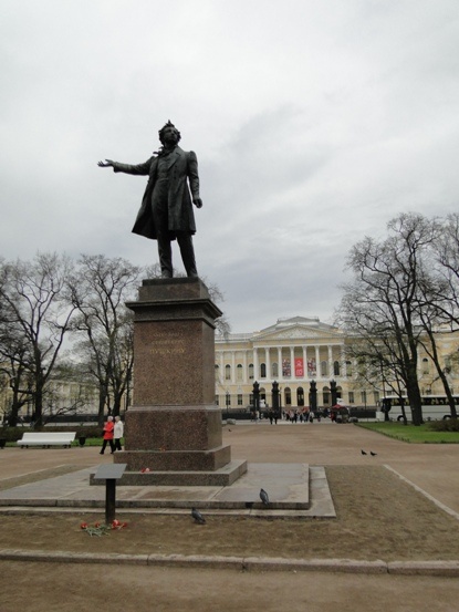 в С.-Петербурге (скульптор М.К. Аникушин, архитектор В.А. Петров) К празднованию 250-летия Ленинграда 19 июня 1957 года Памятник Пушкину был установлен на площади Искусств. Замечателен и сам памятник, который изображает Пушкина очень живым и жизнелюбивым, и то, как монумент вписан в «культурное» окружение Русского и Этнографического музеев, театров и Филармонии. Памятник Пушкину -лицеисту в Лицейском саду (скульптор Р.Р. Бах) Свои юношеские годы поэт провел в Царском Селе (ныне город Пушкин). Здесь лицеисту-Пушкину являлась муза «в таинственных долинах» парка… Неслучайно именно лицейский садик был выбран для установки памятника в сотую годовщину рождения поэта. Специальная комиссия остановила свой выбор на камерной скульптуре Роберта Романовича Баха, который изобразил поэта, в задумчивости сидящим на лавочке в парке. На открытии памятника 15 октября 1900 года присутствовали члены царской фамилии, высокопоставленные чиновники и военные, потомки поэта - его сын, генерал, Александ