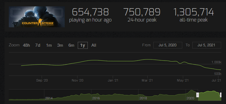 КОЛИЧЕСТВО ИГРОКОВ В CS:GO СОКРАТИЛОСЬ. ВОЗМОЖНО, ИЗ-ЗА ВВЕДЕНИЯ ПЛАТНЫХ ПРАЙМ-СТАТУСОВ