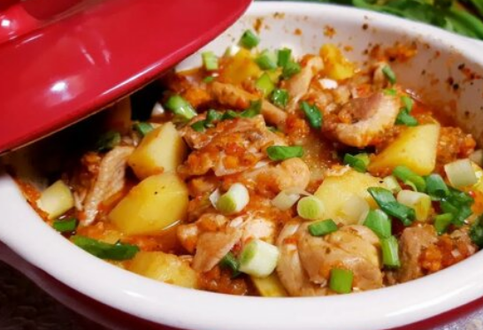 Для приготовления одного горшочка потребуется: - 150 граммов курицы; - пара больших помидоров; - луковица; - перец молотый; - четыре чесночные дольки; - соль; - сорок грамм масла сливочного; - петрушка; - укроп; - зеленый лук; - болгарский перец. Способ приготовления. Вымыть мясо, порезать на кусочки. Мелко порубить помидоры, нарезать перец. Кладем в горшочек сливочное масло, курицу, перец, помидоры, порубленный чеснок. Все солим и перчим, добавляем измельченную зелень и ставим в духовку на полтора часа. К столу подают в горшочках, предварительно все перемешав. К этому блюдо хорошо подать сметану. Рулет из утиного фарша. Для приготовления необходимо: - полкилограмма утиного филе; - две средних луковицы; - соль; - пять яиц; - перец молотый черный; - сливочное масло; - сметана; - пучок петрушки; - ложка столовая аджики. Способ приготовления. Готовим фарш. Режем мясо на куски, пропускаем через мясорубку вместе с порезанным репчатым луком два раза. Для придания более острого и насыщенного