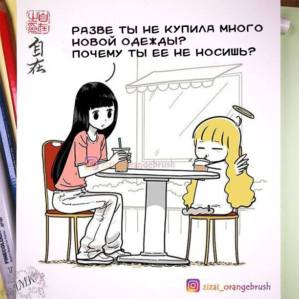 Сегодня я поняла, что комиксов о Сладкой парочке от Цзы Цзай, тоже становится все меньше и меньше. Печально, но скорее всего, скоро я переведу вообще все, что пока есть на его страничке в англоязычном варианте. Разумеется, еще много историй осталось о Садако и Блэки, но и они волшебным образом тают из-за того, что я часто их стала переводить. В общем, если вдруг в какой-то момент Цзы Цзай перестанет появляться на моем канале, значит это произошло. Хотя, наверное я еще ни один раз напишу об этом, чтобы уж наверняка. И все равно найдутся люди, которые, так этого и не прочитают, а будут спрашивать в комментариях. Кстати, в группе ВК, я восстанавливаю хронологию эпизодов так, как они выходили у самого автора. Ссылка на группу ВК: ЛМК | Ссылка на Instagram: perevod_lmk 💖 Сегодня будет история, в которой, как многие любят, Ангелочек вновь скушает конфетку "Повзрослей" и будет радоваться своим длинным ножкам: Миниатюрная Ангелочек сильно расстраивается из-за своего роста. Было уже несколь