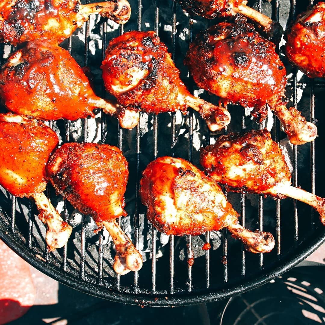 Крылья или ножки? Ножки больше💯 по размеру, значит больше счастья. К двенадцатой наконец врубаешься как разделывать. Да, это вам не шмат говядины отрезать🔪. Малыш #SmokeyJoe ⚫🗯 в который раз отправляет в путешествие в мир #bbq спасибо @redgrillbbq. Соус из того что под рукой, но обязательно в составе соус для барбекю. Мне больше нравится от #heinz. Щепа яблони🍏, чтобы прикоптить и - снова это чудо. Чудо приготовления обычного продукта в деликатесный шедевр. Течет вкуснейший сок, хрустит аппетитная корочка (Или это косточка? Их подозрительно мало после окончания праздника), невероятные ароматы бьют в нос🤜🏻👃🏻, и кажется весь мир состоит из вкуснейшего мяса. Бегу🏃♂, по