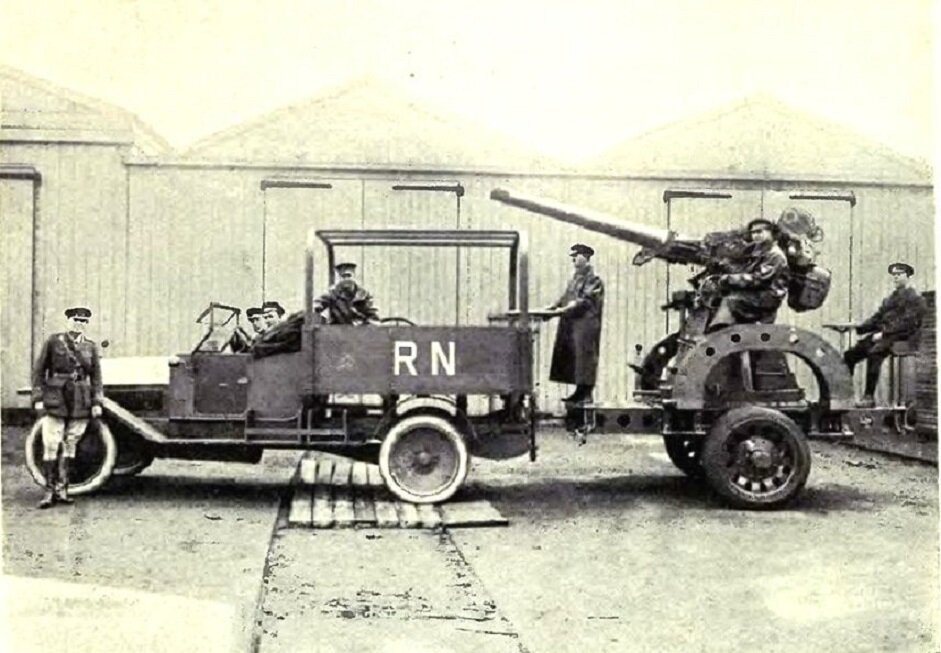На службе флота. 37-мм зенитная пушка на шасси Остин. 1914. Первые британские зенитки.