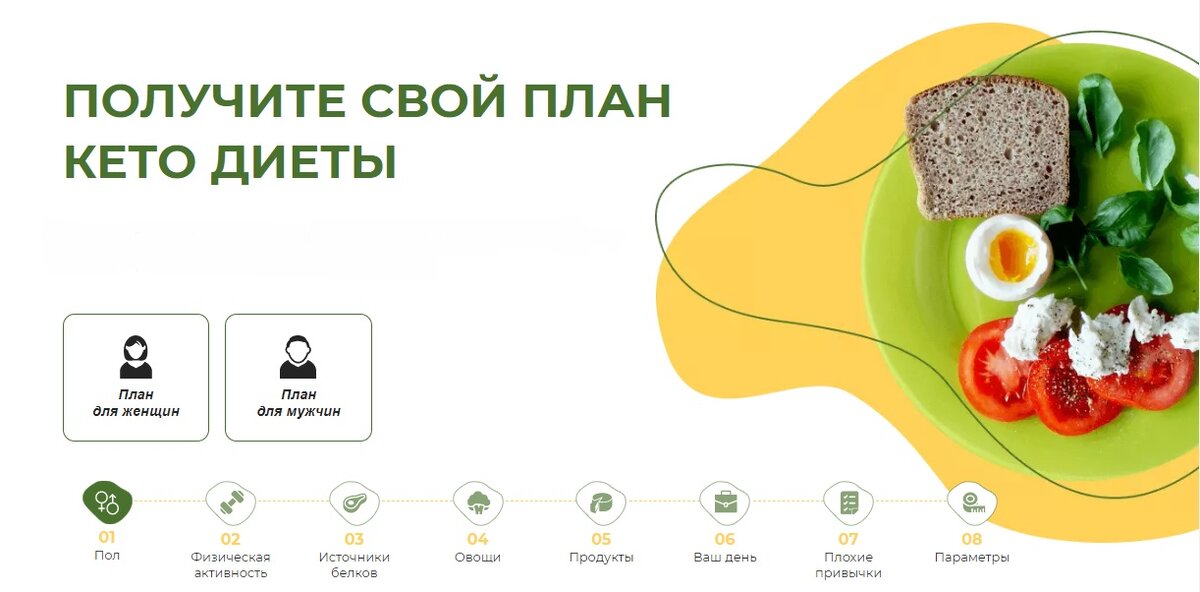 Ответьте на 8 простых вопросов, и мы рассчитаем ваш индивидуальный план питания.