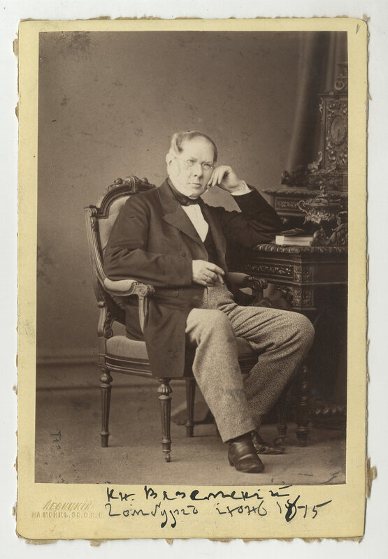 А неумолимая судьба тем временем продолжала обрывать последние связи Петра Андреевича с жизнью: с пятидесятых скорбный список всё пополнялся и пополнялся именами Батюшкова (так и ушедшего с «темнотою» рассудка), Сергия Уварова, Софи Карамзиной, Вигеля, Долли Фикельмон, Натальи Николаевны Пушкиной (возможно ли в это было поверить?) 1859-й унёс в могилу непримиримого врага - Фаддея Булгарина. «...Теперь я один с глазу на глаз с памятью моею...» В 1865-м не стало Петра Александровича Плетнева, к которому в последние годы Вяземский адресовался довольно часто...