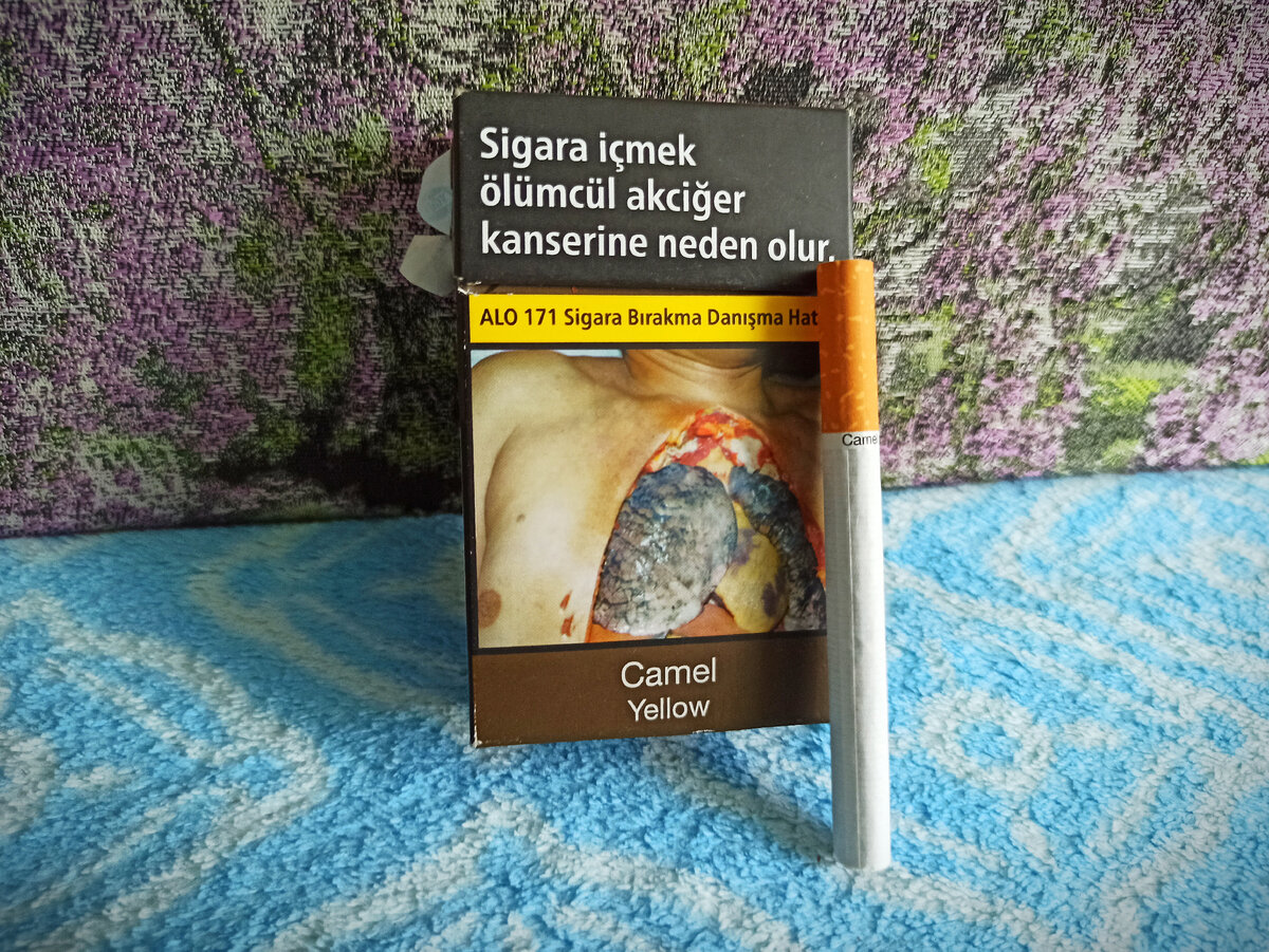 Доброго времени суток, друзья. Из турецких сигарет я мало что курил. Например, пробовал Tekel 2000. И вот, мне довелось отведать современный турецкий Camel Yellow. Что забавно, стоят они там примерно 15 лир. В рублях это 126. А в России Camel стоит уже рублей 190. Любопытно, я думал, в Турции сигареты дороже наших, а оно вон как. Что конечно сразу бросается в глаза - это дизайн пачки, а вернее, его отсутствие. Пачки в Турции все обезличены и в нашлепках. Думаю, Россию ждет такая же участь в ближайшем будущем. Изготавливает их JTI. Пачка имеет прямые углы, на правой грани расположен штрих-код. Сзади имеется акциза. Это сигареты именно внутреннего рынка. А больше тут и сказать нечего, просто уничтожена самоидентичность пачки. Я считаю, что это полностью бредовый и бесполезный метод ведения борьбы с курением. Сами сигареты имеют пробковый фильтр, который средней плотности. И очень короткий некурительный обод, на котором написано "Camel". Единственный Camel, в котором я видел такое оформле