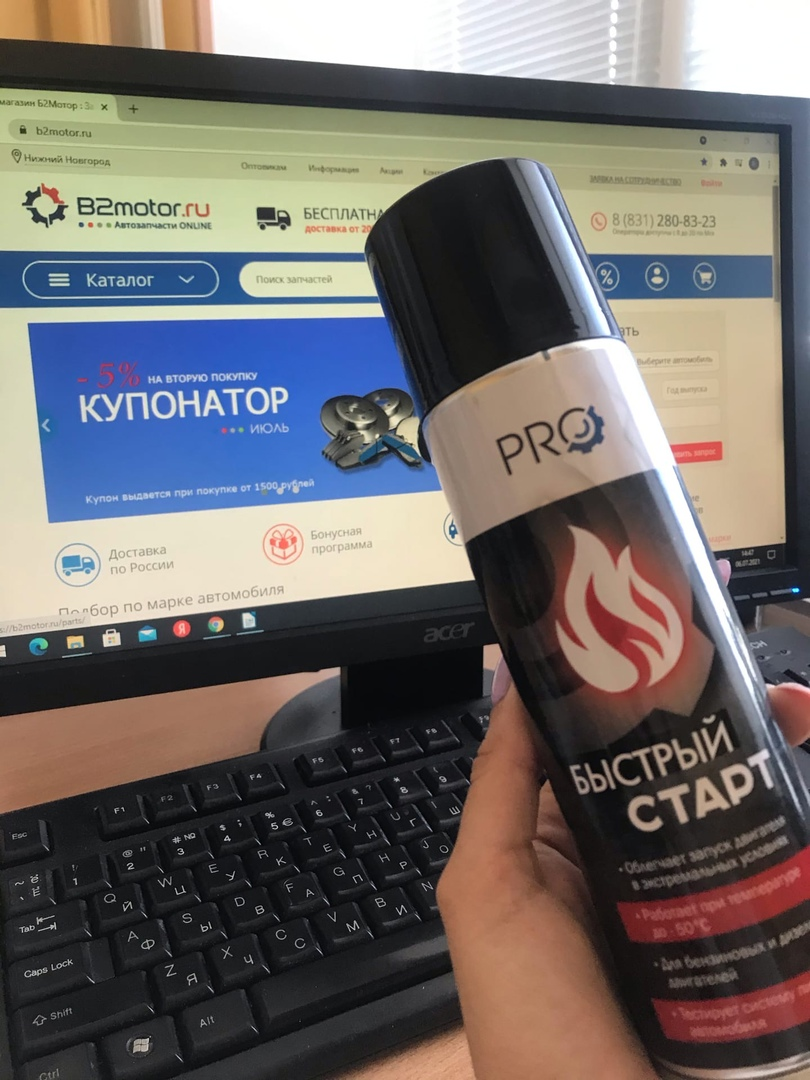 “Быстрый старт” - средство, которые стоит иметь в багажнике или гараже каждому водителю. Этот вид автохимии представляет собой горючая смесь эфиросодержащих жидкостей и газов, воспламеняемость которых заметно выше, чем у бензина. Именно поэтому при использовании Быстрого Старта стоит быть осторожными. Быстрый старт по принципу работы часто сравнивают с жидкостью для розжига костра. Средство позволяет запустить авто даже при очень низких температурах окружающей среды. В магазине B2motor.ru представлены уникальные бреды автозапчастей и автохимии. Линейку автохимии Pro можно назвать самой справедливой по соотношению цена=качество. Преимущества средства БЫСТРЫЙ СТАРТ PRO: При начале работы с “Быстрым стартом” стоит достать из багажника огнетушитель. Ведь само по себе средство имеет огнеопасный состав. После того, как вы позаботились о соблюдении всех норм безопасности, можно приступать к нанесению. Быстрый старт должен попасть в цилиндр, для этого его нужно распылять после воздушного филь