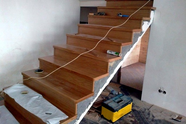 Облицовка бетонной лестницы деревом