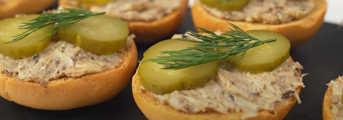 Эта вкусная и сытная закуска покорит ваших домашних и гостей. Такие бутерброды со шпротами по-новому оценят все. Готовится это блюдо очень быстро из самых доступных ингредиентов и не займет у вас много времени на кухне. всего несколько минут и можно угощать семью или гостей. Ингредиенты блюда: Пищевая ценность блюда на порцию (100 гр.) Шаги приготовления: 1. Сыр натираем на мелкой тёрке. 2. Чеснок измельчаем. 3. Шпроты разминаем вилкой, пока не получится однородная масса. 4. Смешиваем вместе шпроты, чеснок, сыр и майонез. 5. Подсушиваем кусочки батона на сковороде или в духовке. 6. Кусочки батона смазываем паштетом и украшаем огурцом и укропом по желанию. Ну вот паштет из шпрот на бутерброды и готов. Ароматы стоят просто невероятные. Уверены, что вы оцените этот рецепт. Приятного аппетита. «Понравился рецепт? 😊 не забудьте поставить лайк 👍 и поделится с друзьями. Спасибо! Также, приглашаем посмотреть этот пошаговый рецепт на нашем сайте: https://www.kushpo.info/zakuski/pashtet-iz-shp